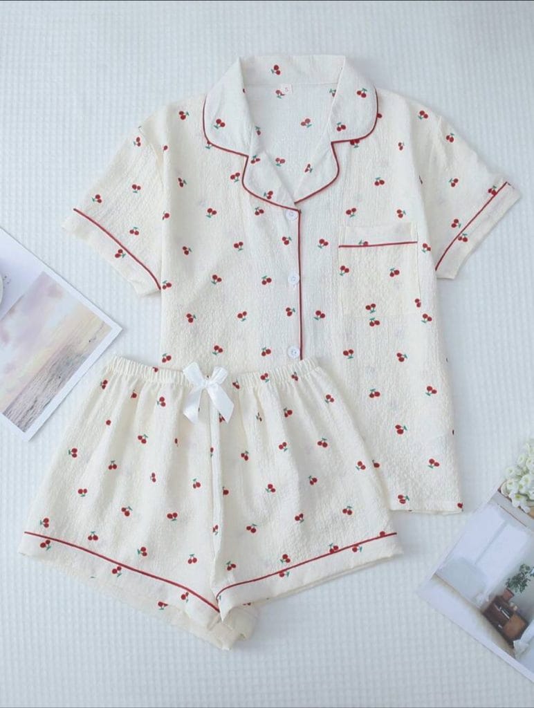 Ensemble De Vêtements De Nuit Doux Imprimé Cerise