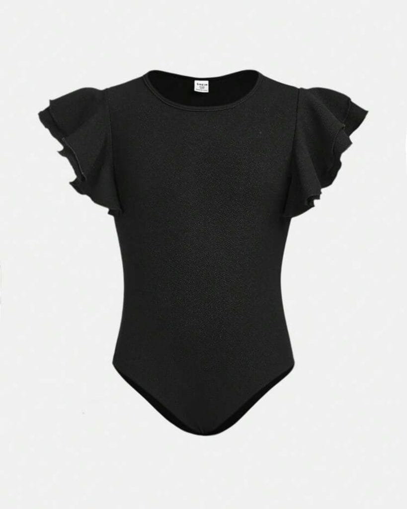 SHEIN Girlism Bodysuit Décontracté À Manches Volantées Courtes Et En Tricot Pour Fille Préadolescente Couleur Solide