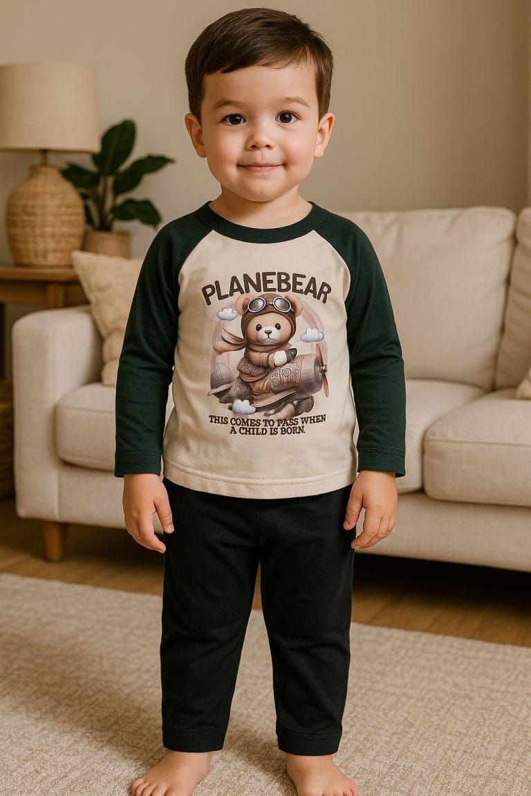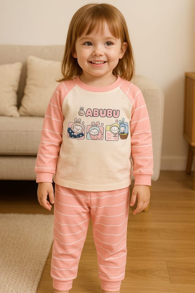 Ensemble de pyjama satiné pour bébé fille avec nœud imprimé et passepoil contrastant