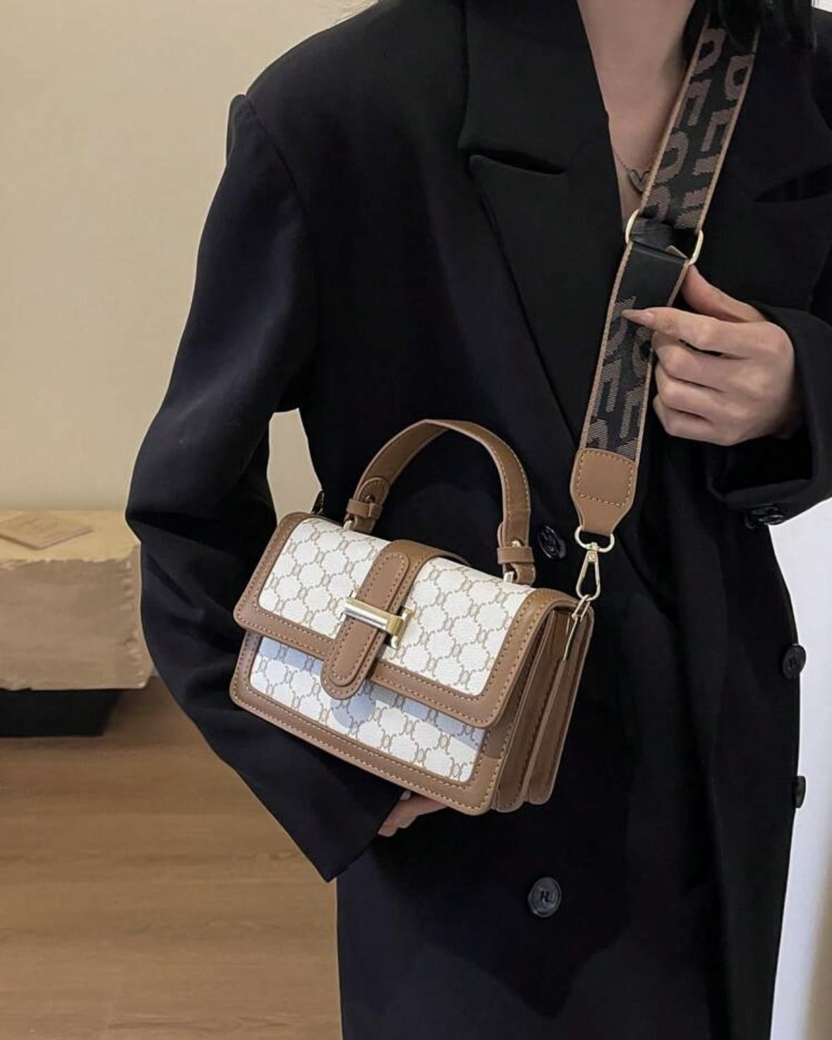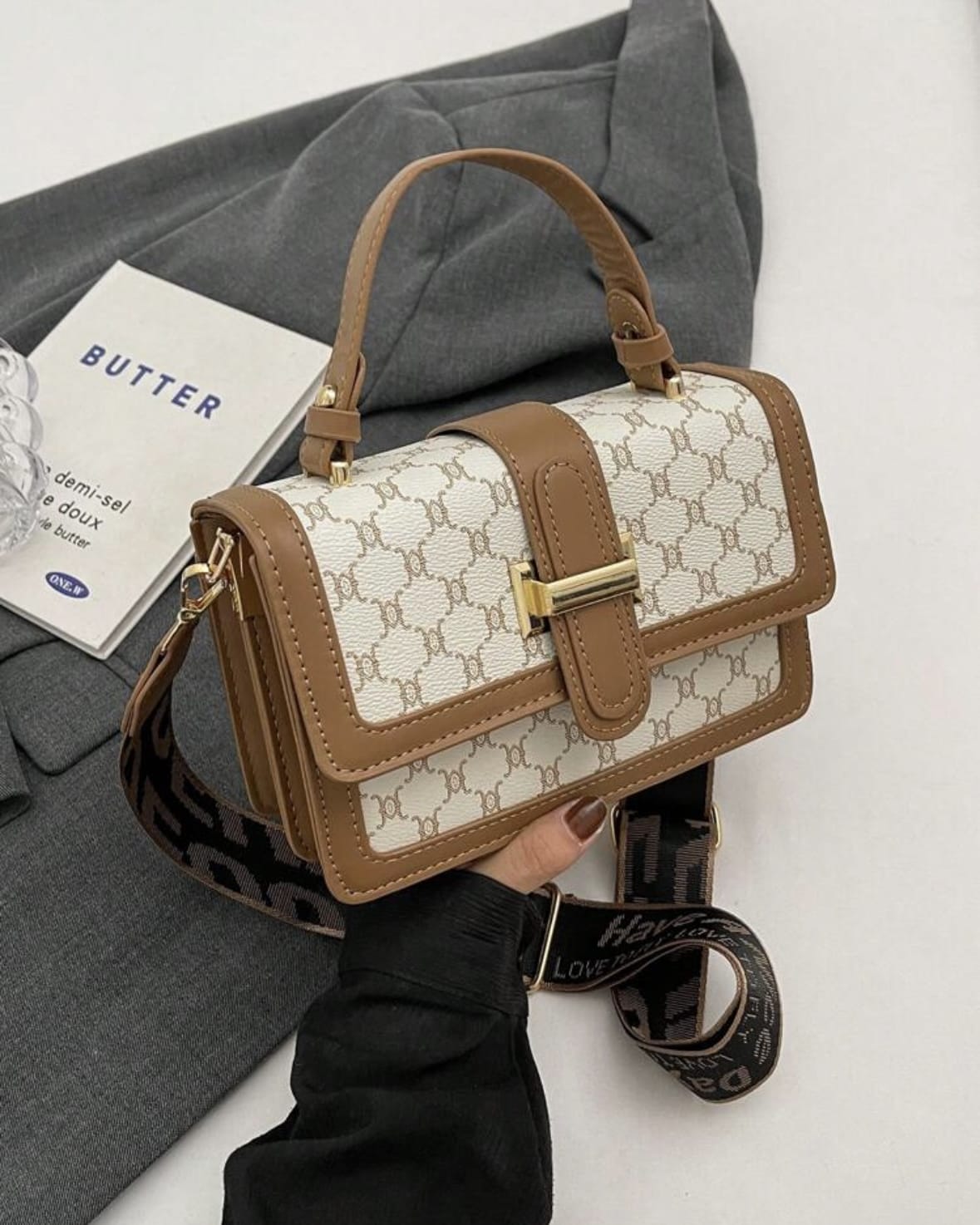 1 pièce Sac de soirée ou sac-bandoulière multicolore avec carreaux en PU avec boucle, à la mode et versatile pour les voyages quotidiens des femmes