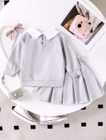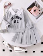 2 pièces Ensemble de style scolaire décontracté pour jeune fille, avec sweat-shirt à col imprimé lettres et jupe plissée, printemps et automne