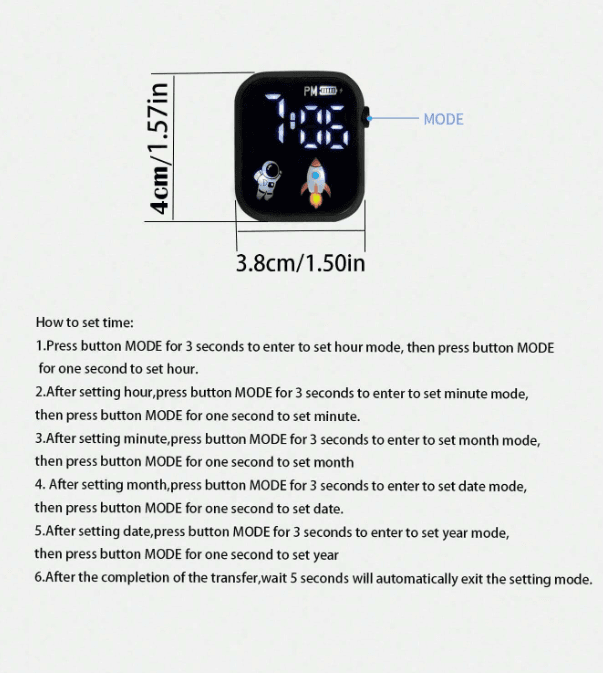 Montre numérique à affichage LED, modèle astronaute, bracelet à boucle, minimaliste, idéale pour la Saint-Valentin, Halloween, Noël, un cadeau de Noël ou un anniversaire.