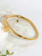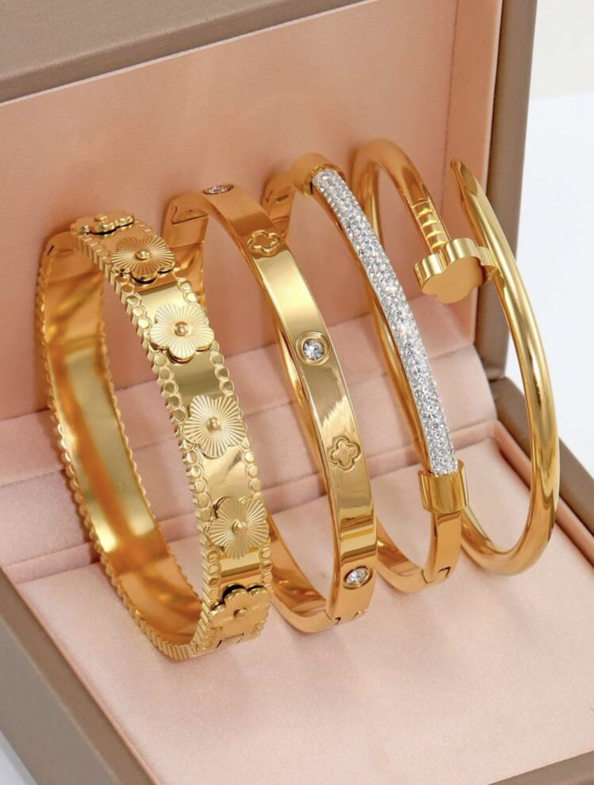 4 pieces Bracelets rigides en acier inoxydable plaqué or 18 carats pour femmes , design de fleur de tréfle à 4 feuilles en zircone cubique brillante , convient pour un port quotidien