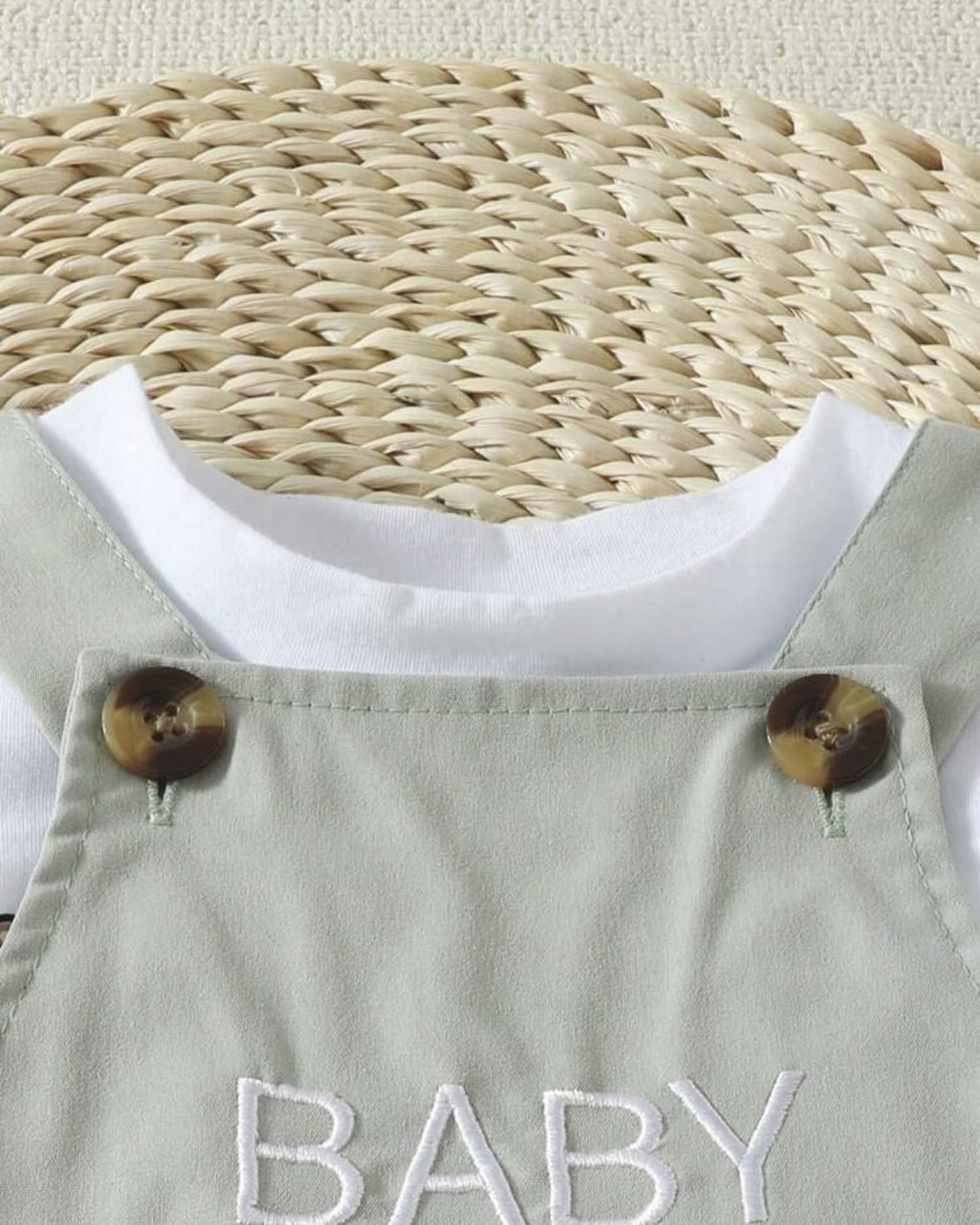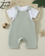Barboteuse D’une Seule Pièce Pour Bébé Garçon De Couleur Vert Grisâtre Légère De Printemps Et D’été Avec Mignon Broderie De Lettre Pour Tenues Décontractées Quotidiennes