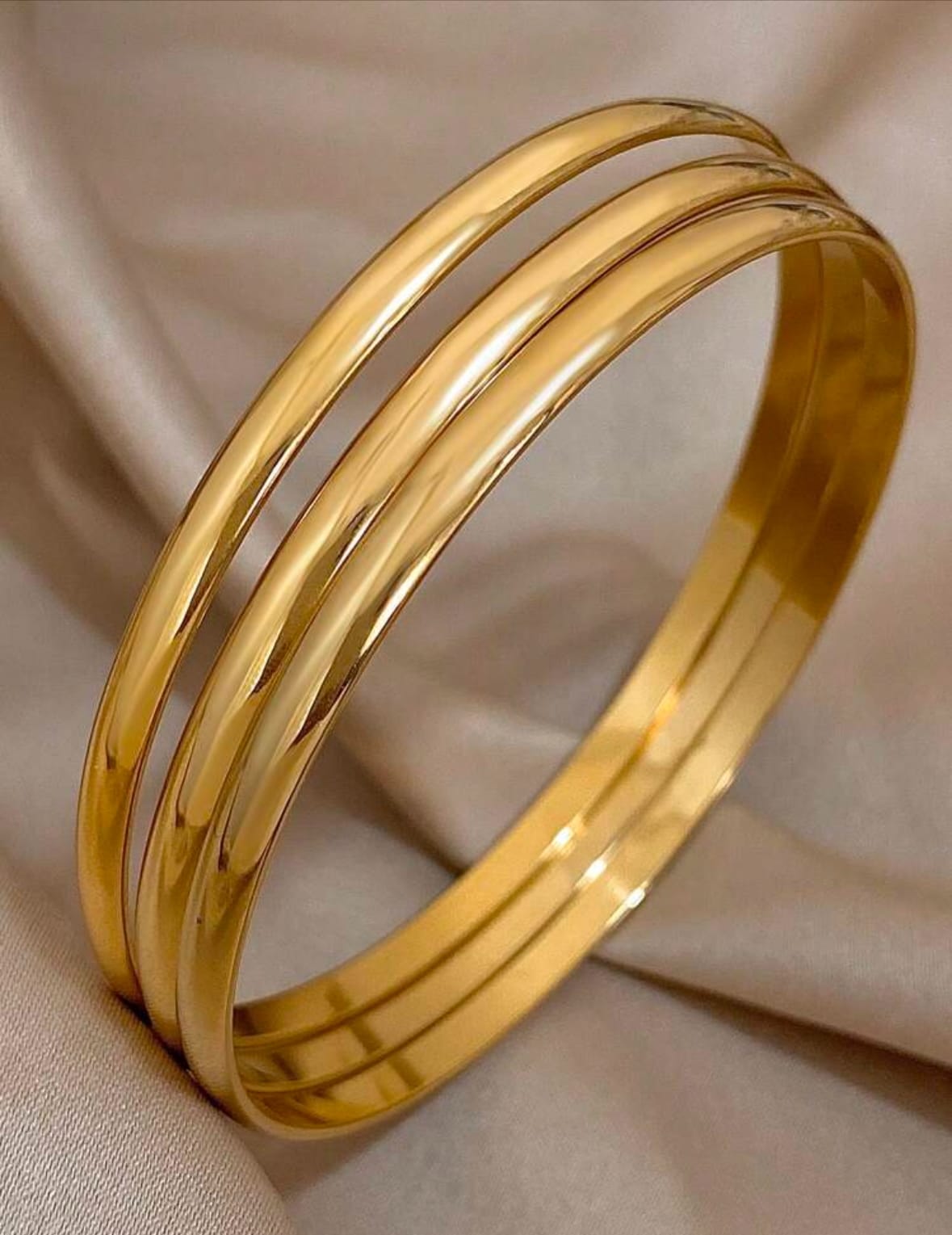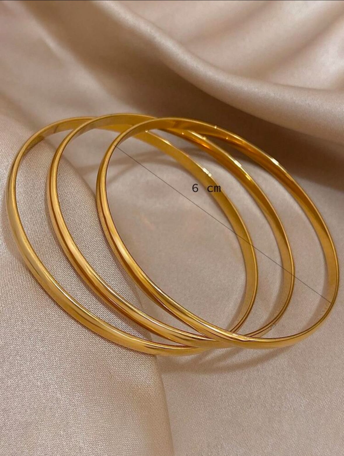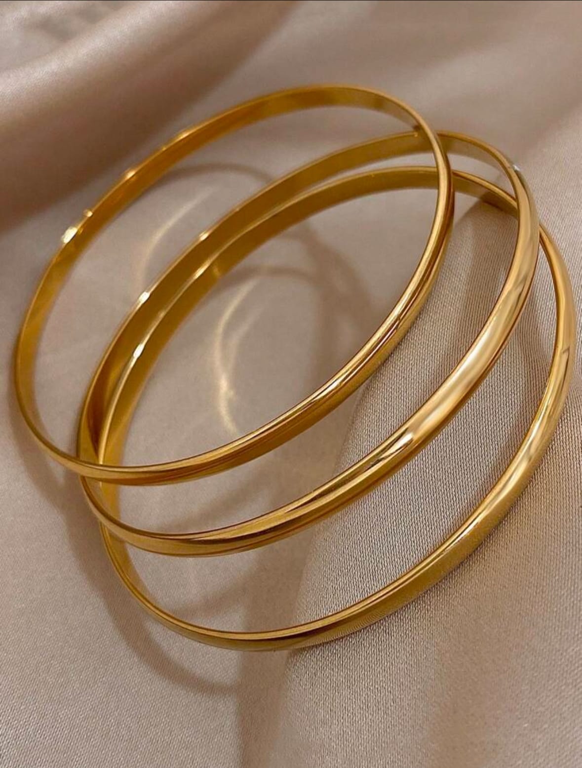 3 pièces/set Bracelets joncs dorés unis pour femmes, poignets fins pour adolescentes, bracelets en acier inoxydable minimaliste pour usage quotidien et fête, cadeaux de Noël