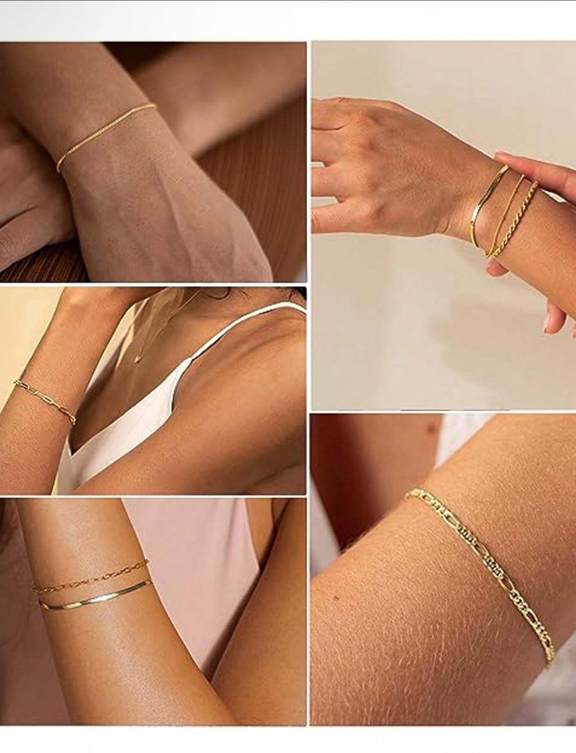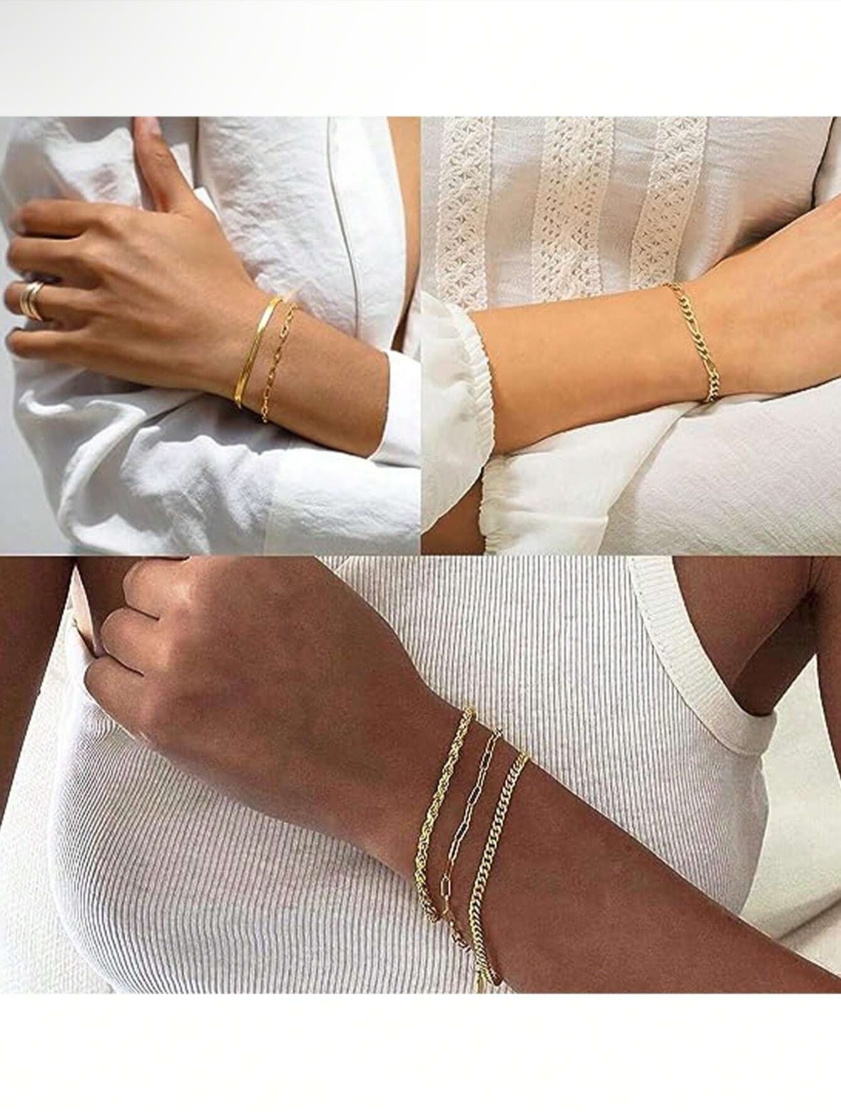Ensemble De 5 Bracelets Superposés Pour Femmes En Acier Inoxydable Plaqué Or 18 Carats, Diverses Combinaisons, Cadeau Délicat.