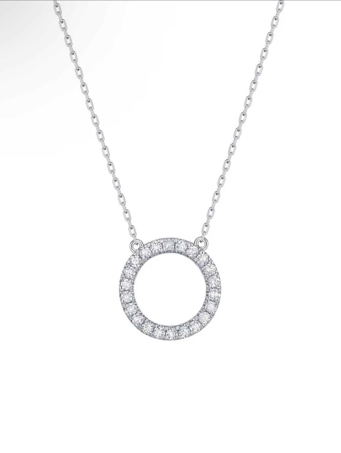 Collier zircone cubique cercle breloque argent.