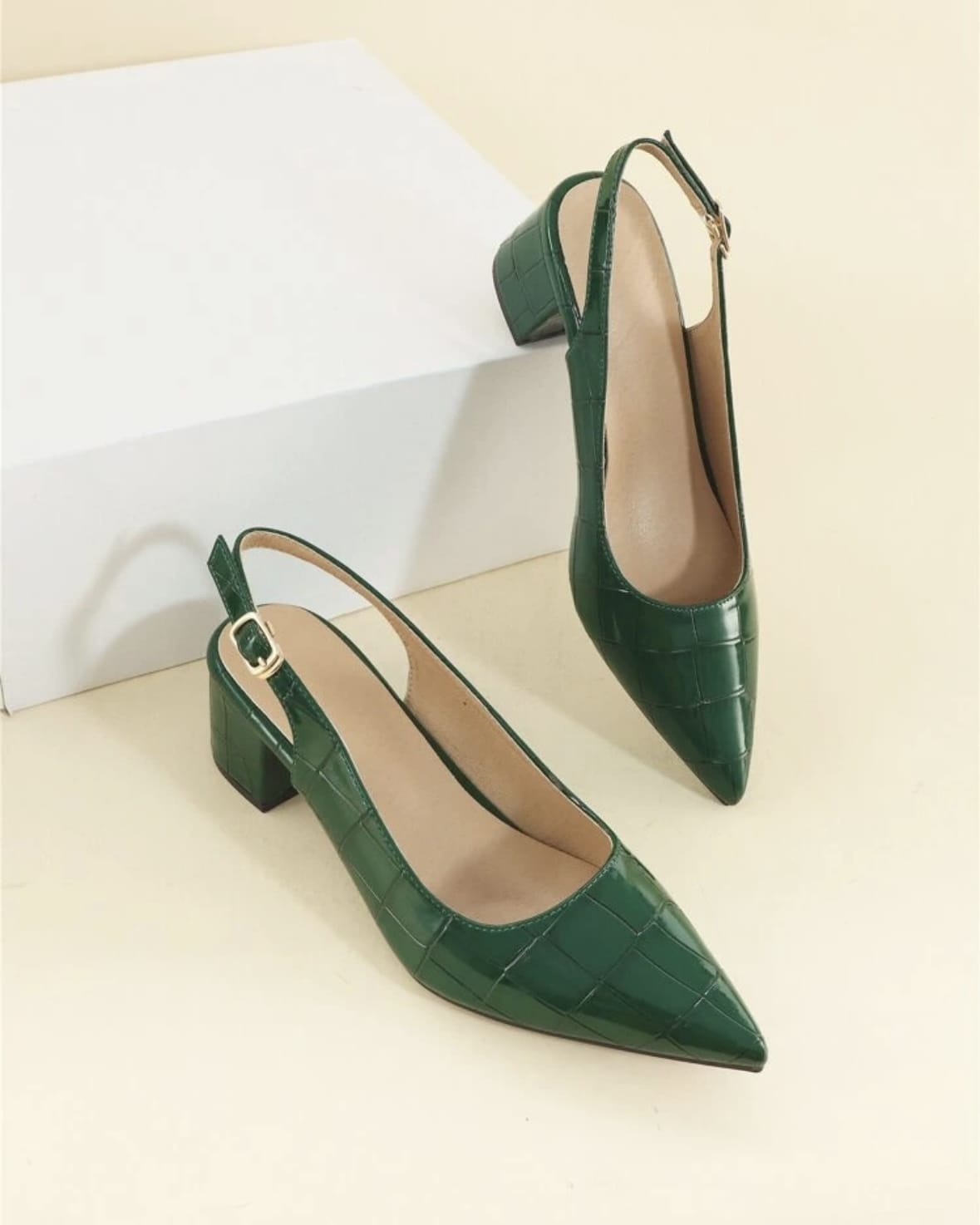 Femme En Relief De Crocodile Escarpins , À Bout Pointu À Talons Épais Escarpins À Bride Arrière