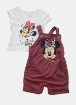 Jolie salopette et t shirt Mickey couleur bordeaux
