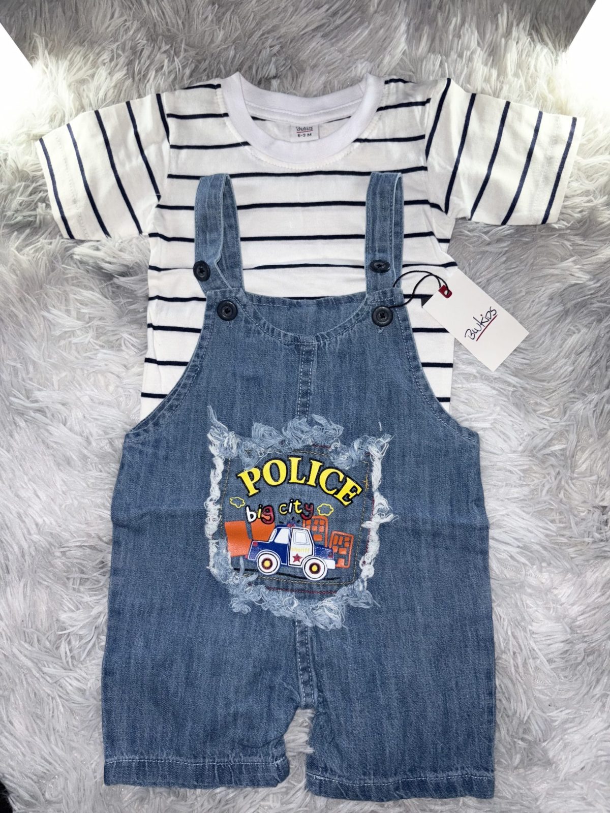 Jolie salopette jean police avec t-shirt