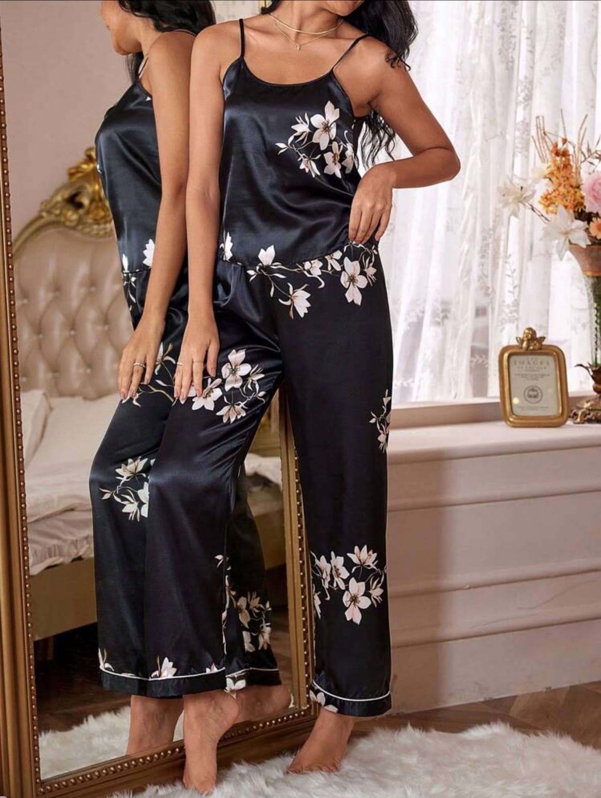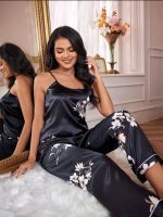 LuxeNights Ensemble de pyjama / Ensemble de pyjama avec imprimé floral et passepoil de contraste