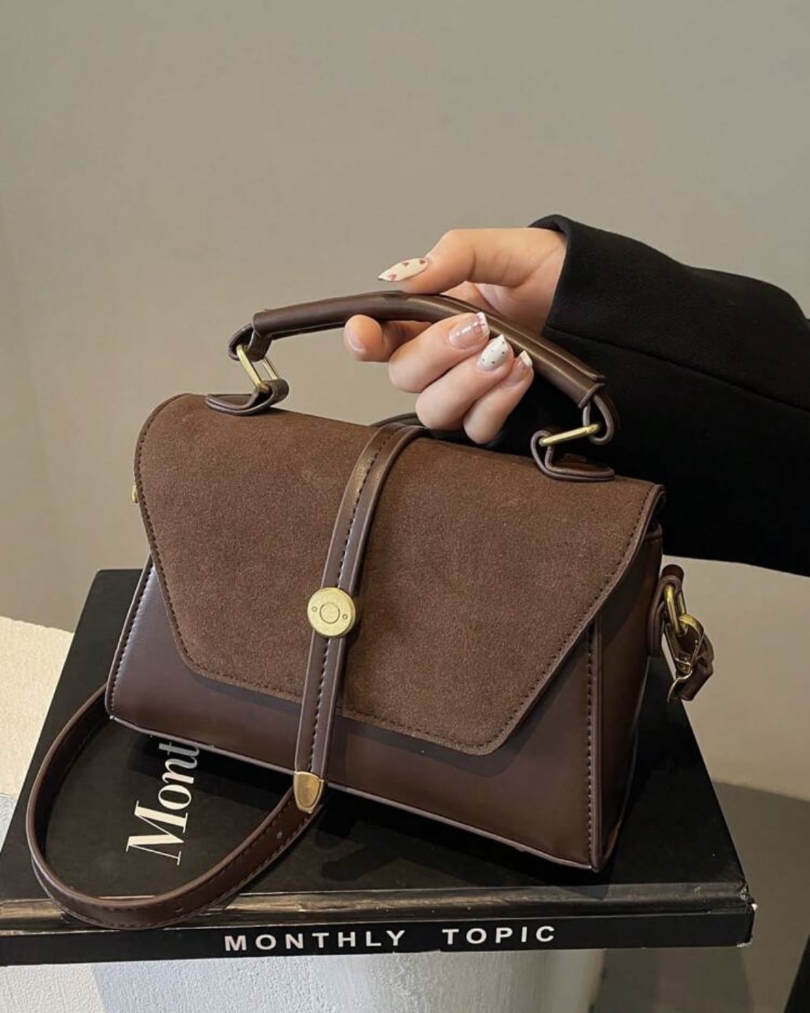 Nouveau sac à bandoulière carré mini rétro en PU de 2025, en suède et PU brun café, style vintage. Sac messager bandoulière adapté à un usage quotidien, aux rendez-vous, aux cadeaux
