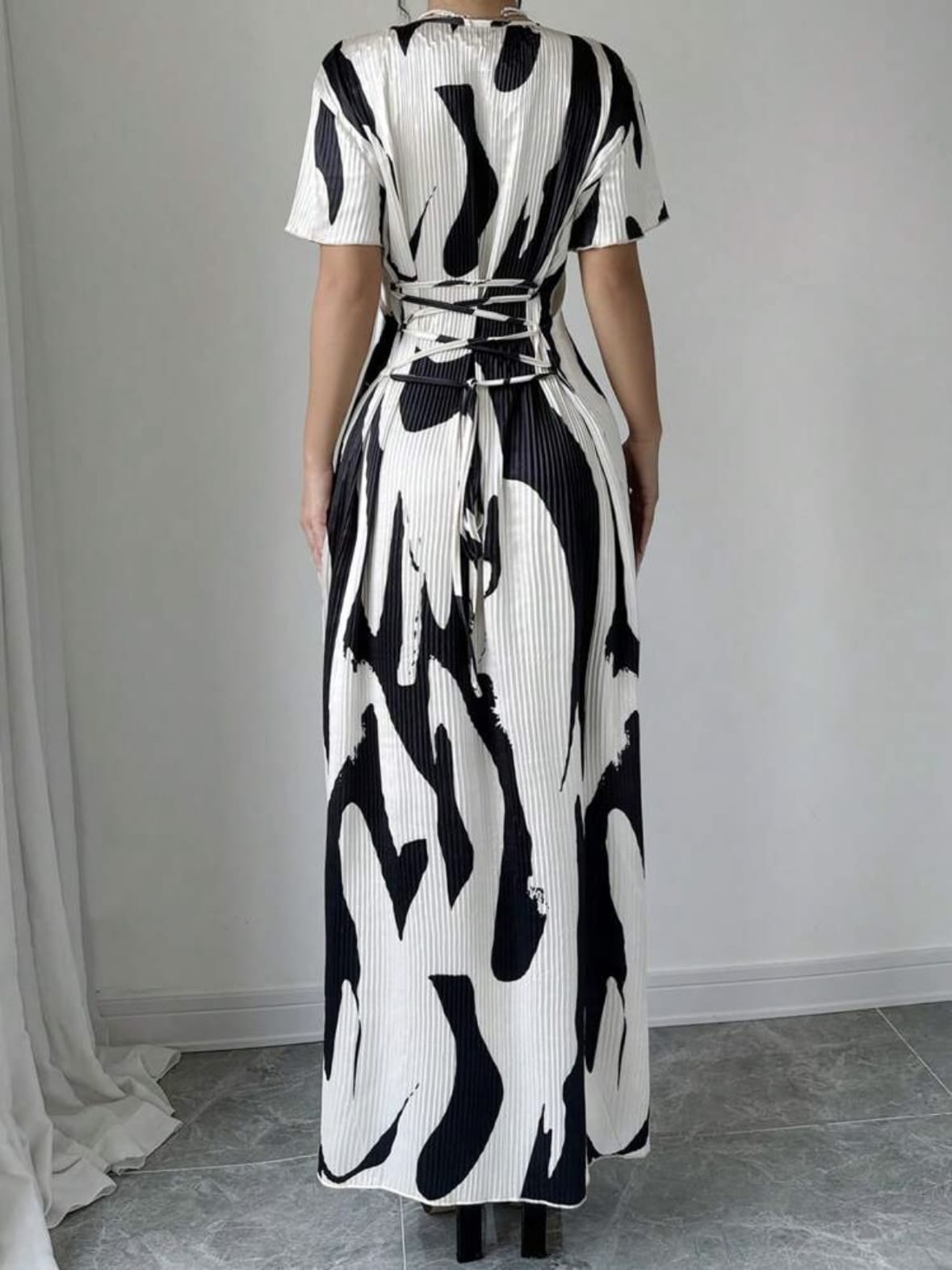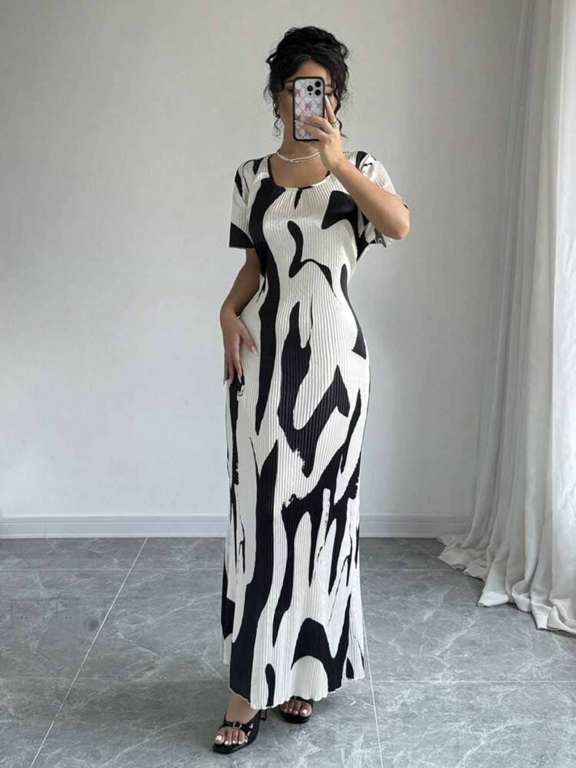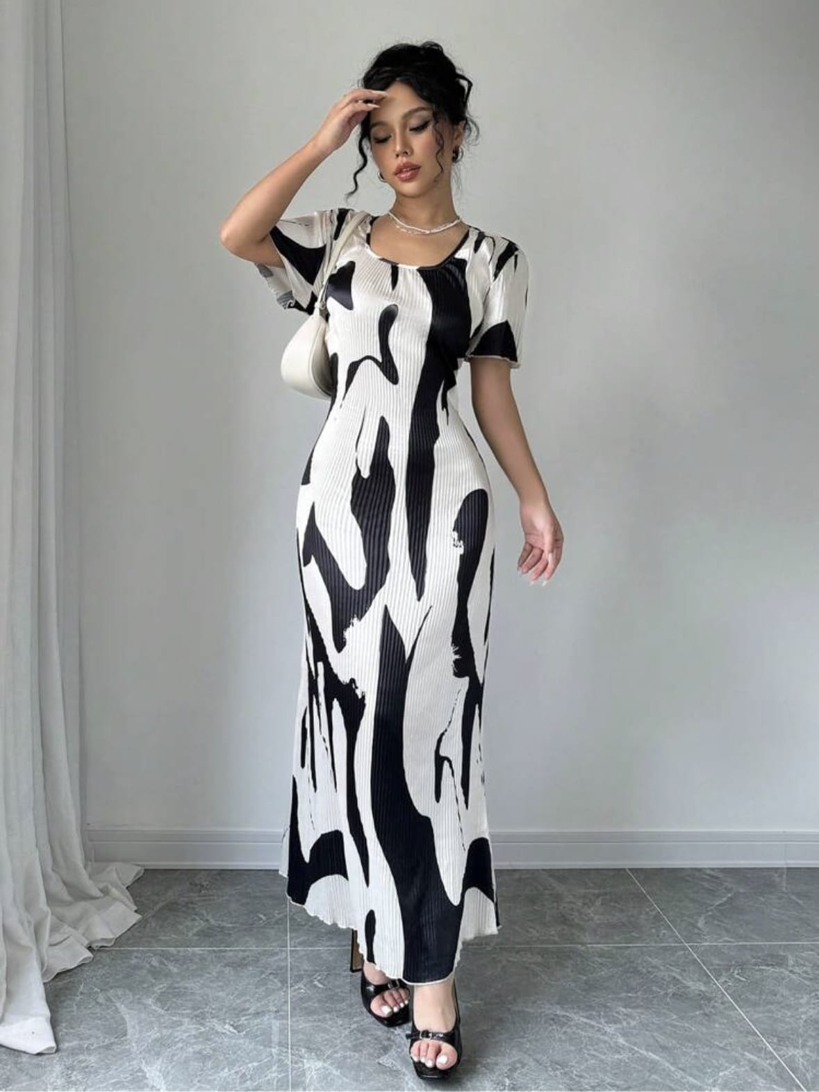 Rafferiza Robe maxi à col carré et manches bouffantes avec imprimé géométrique pour femmes