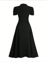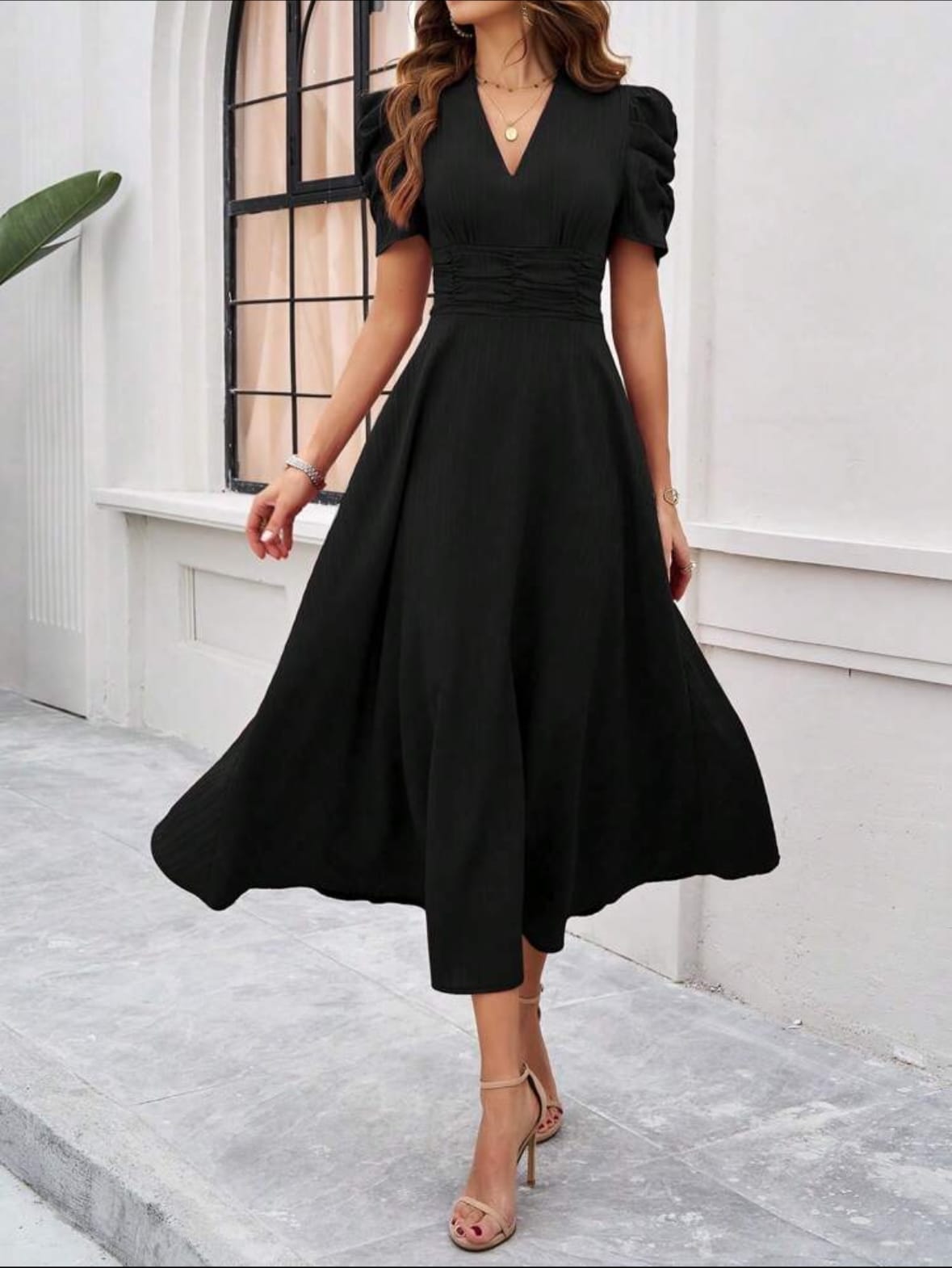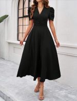 Rafferiza Robe longue évasée avec manches bouffantes et ceinture pour femmes.