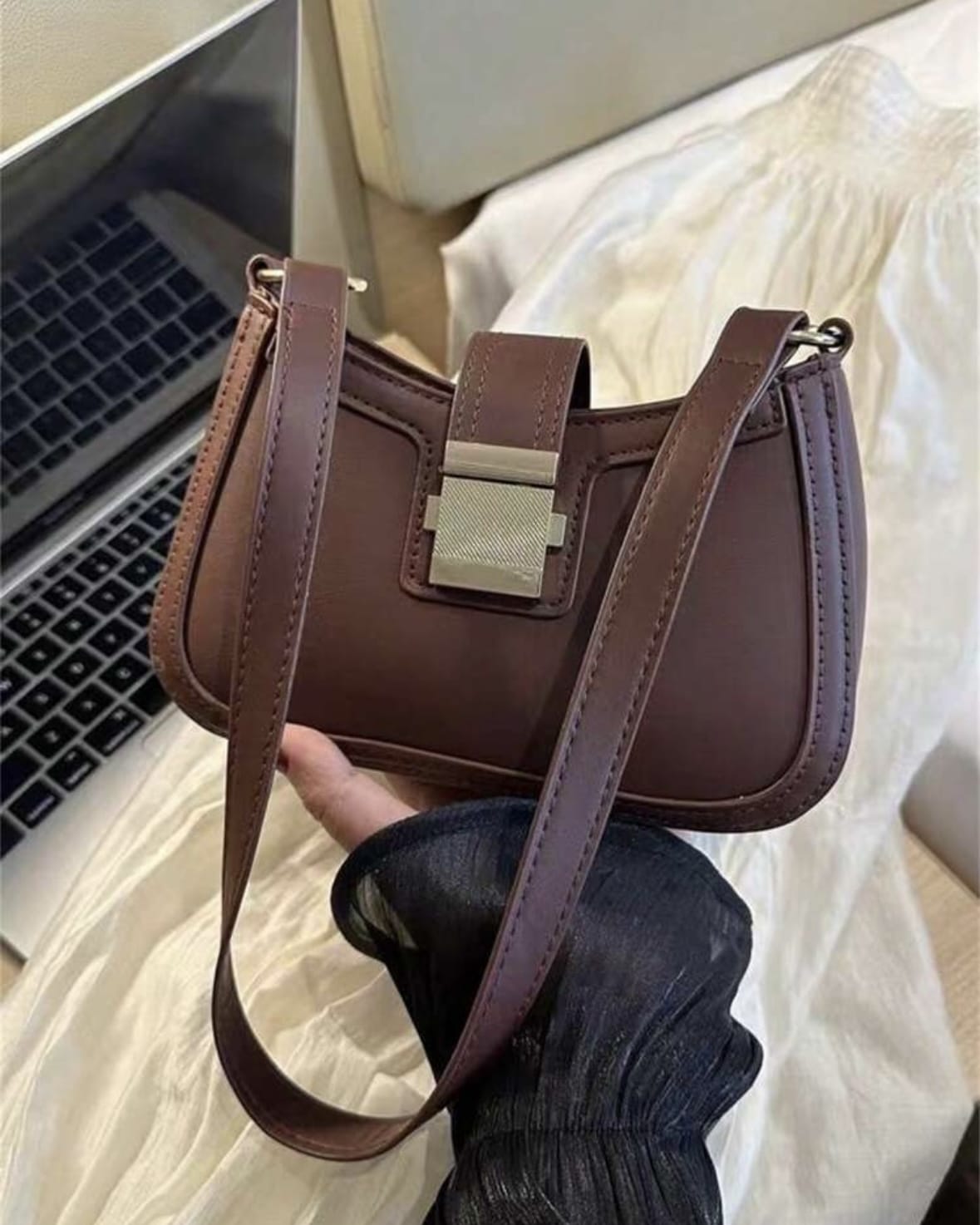 Sac à bandoulière décontracté de qualité premium, couleur unie rétro, polyvalent et adapté pour les déplacements quotidiens
