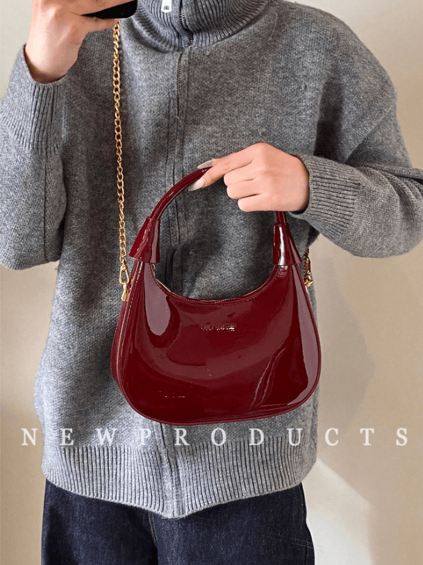 Sac bandoulière en cuir PU verni brillant