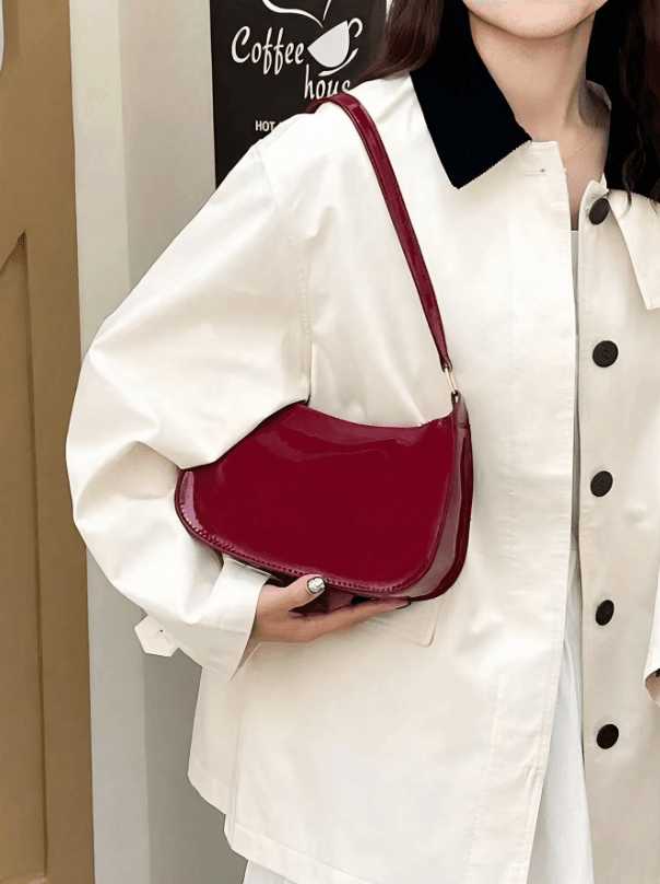 Sac bandoulière simple bordeaux pour femme, tendance printemps/été, sac à main décontracté en PU brillant, idéal pour la Saint-Valentin, le quotidien, le shopping, les rencontres, idéal pour les adolescentes, les étudiantes, le bureau, l’école, le travail et les déplacements.