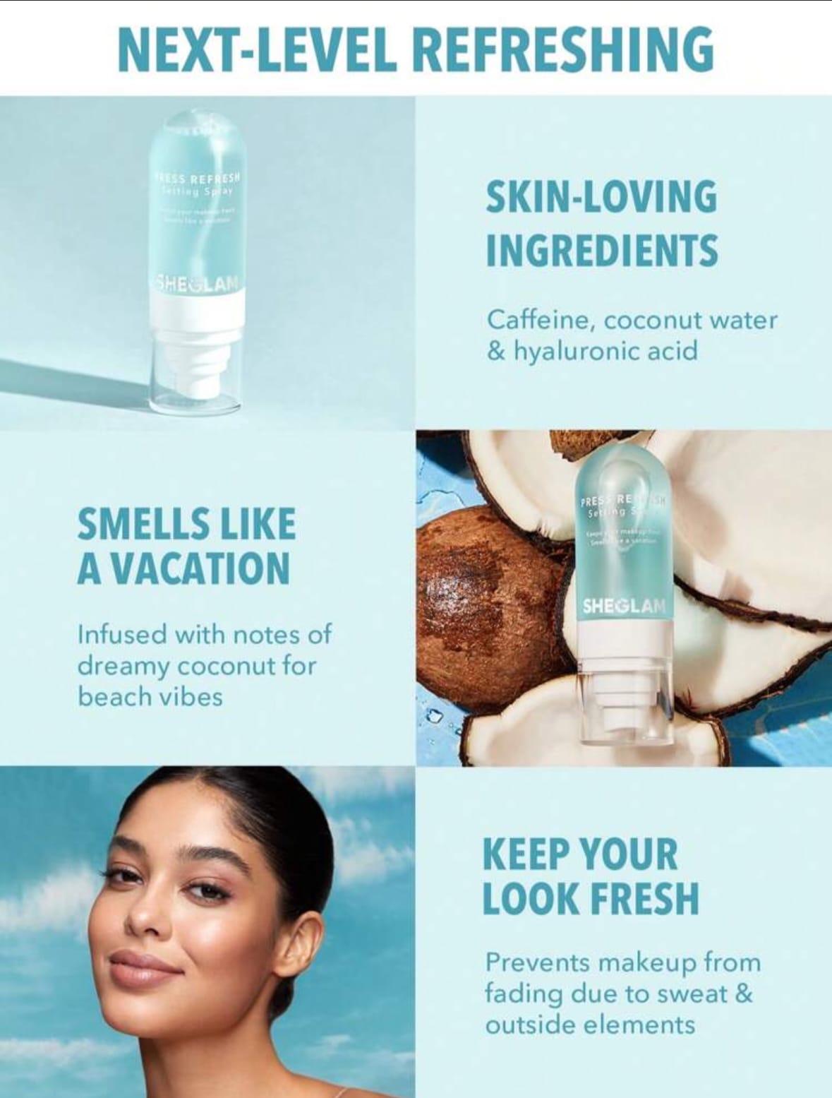 SHEGLAM Spray Fixateur Press Refresh Spray Fixateur De Maquillage Hydratant Longue DuréE Fixateur De Maquillage Non Gras NoëL Hiver Spray Fixateur Rose Marron Saint-Valentin DéCor Amour Cadeau Hiver Maquillage FÊTe Plage Voyage Vacances Rose Y2K Camping ExtéRieur PréSent Rose Mode Fille CosméTique Cosplayer Meilleur Voyage FêTes Couleur Fantaisie Campus éCole Charme Ambiance JournéE De La Femme.