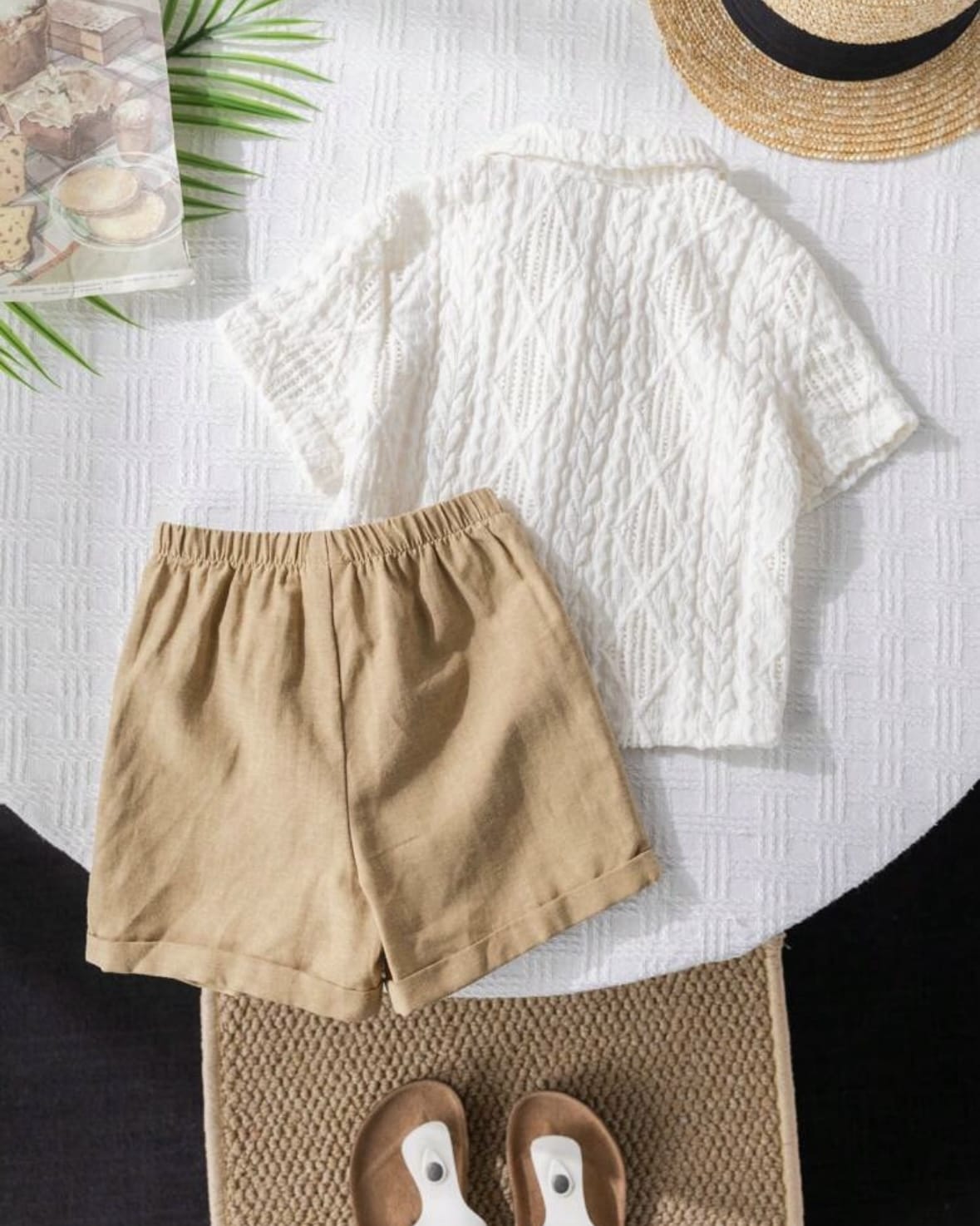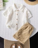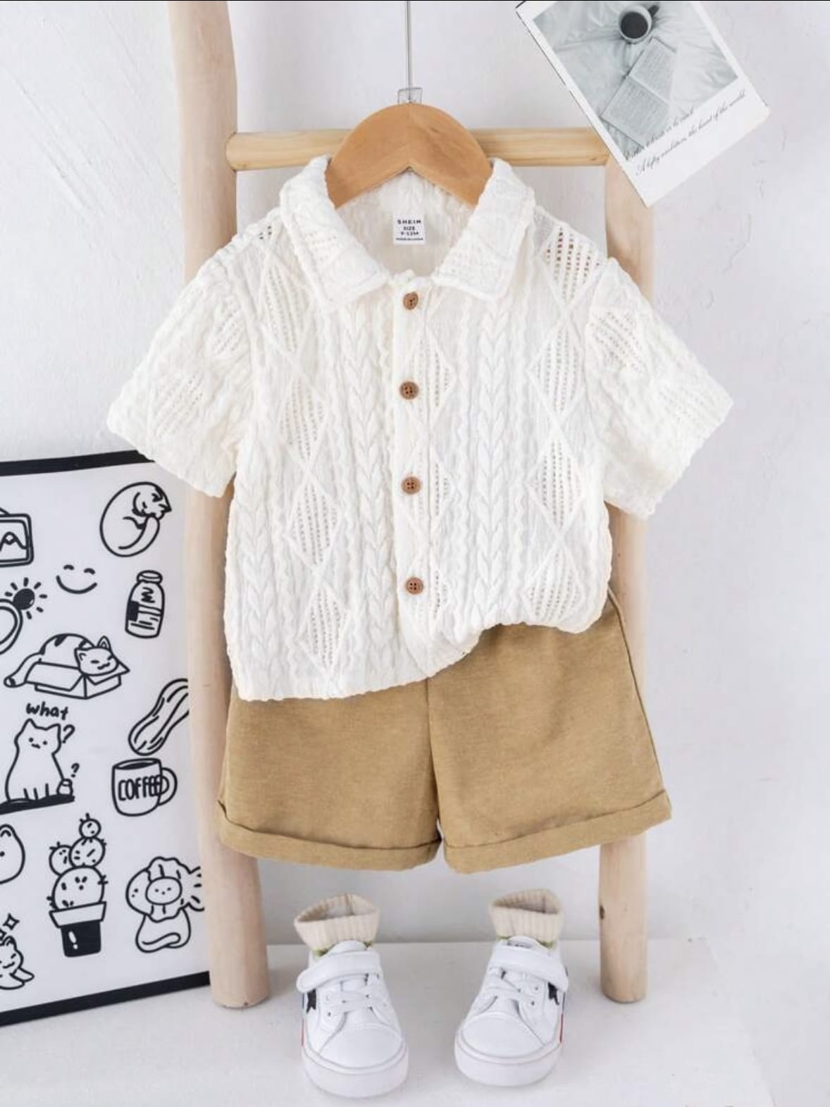 SHEIN 2 pièces Ensemble t-shirt décontracté d’été et short à taille élastique pour bébé garçon, convient pour l’anniversaire, la cérémonie, le mariage, la célébration des 100 jours, la baby shower