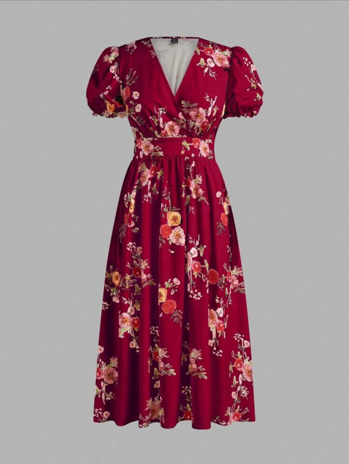 SHEIN Clasi Robe d’été à imprimé floral avec croisé devant et taille cintrée pour vêtements de Nouvel An, grande tenue pour femmes.