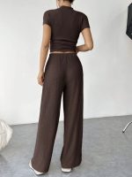 SHEIN EZwear 2 pièces Ensemble Top à manches courtes et pantalon unicolore décontracté pour femmes, printemps et été
