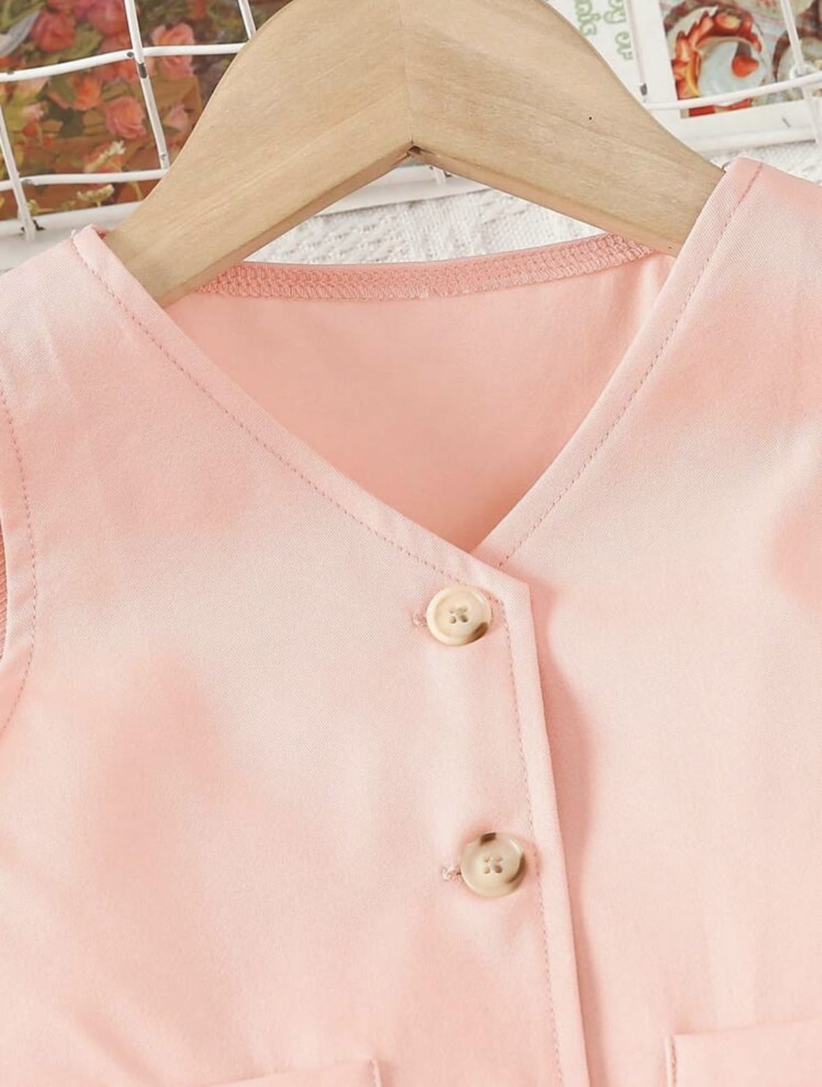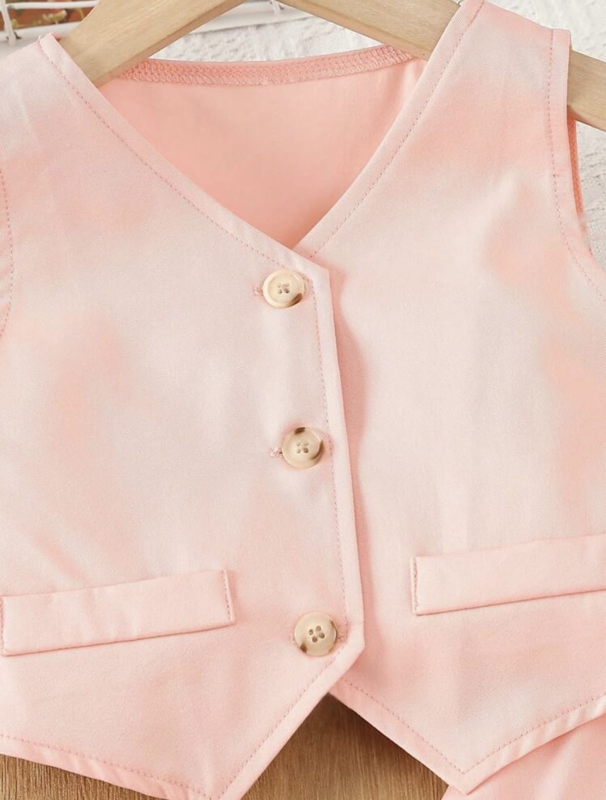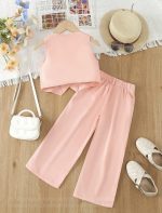 SHEIN Gilet Uni À Simple Boutonnage Et Pantalon Large Pour Jeune Fille