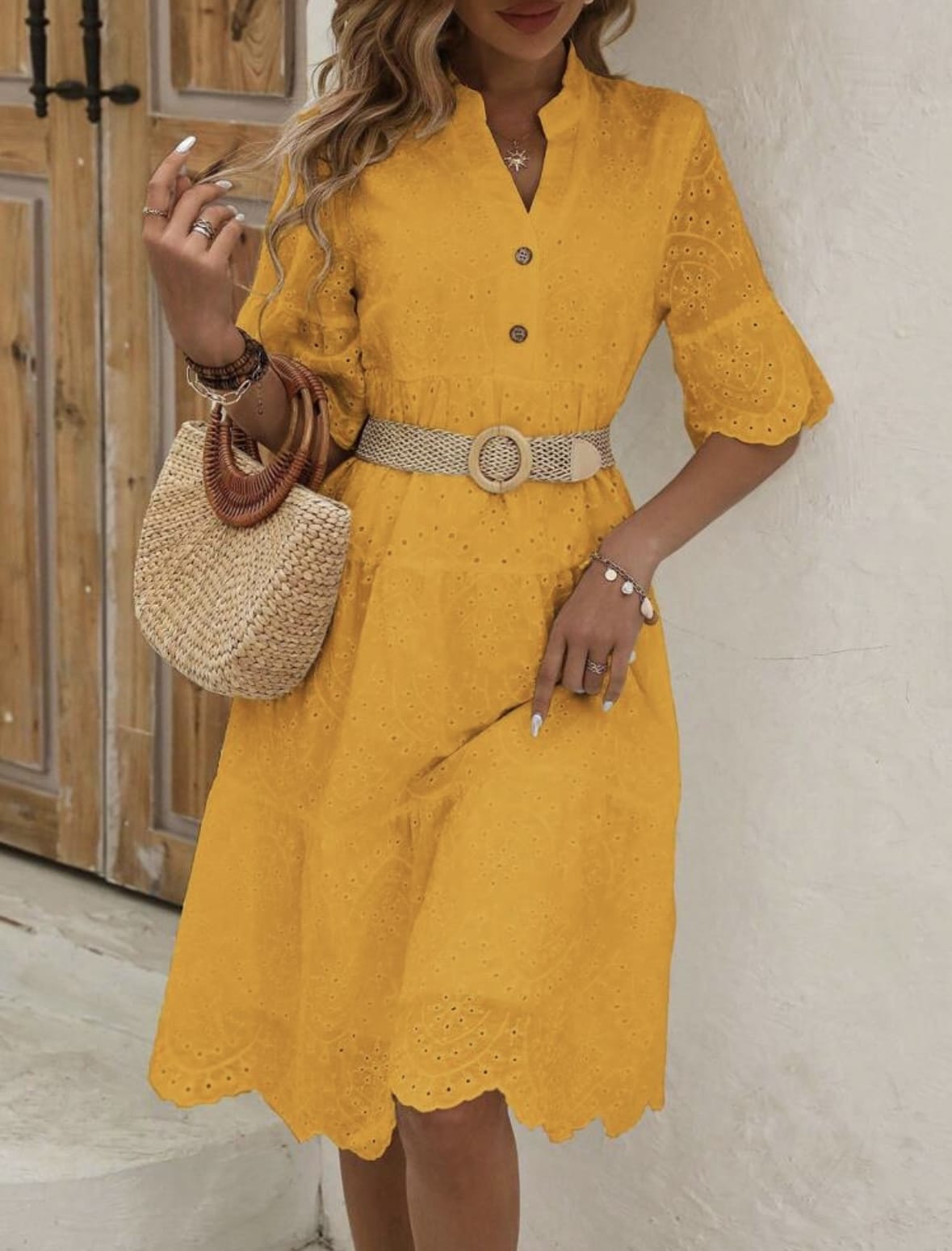 SHEIN LUNE Robe Évasée Décontractée D’été Évidée Avec Broderie, Encolure En V, Ourlet À Volants Pour Sortir