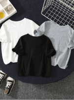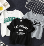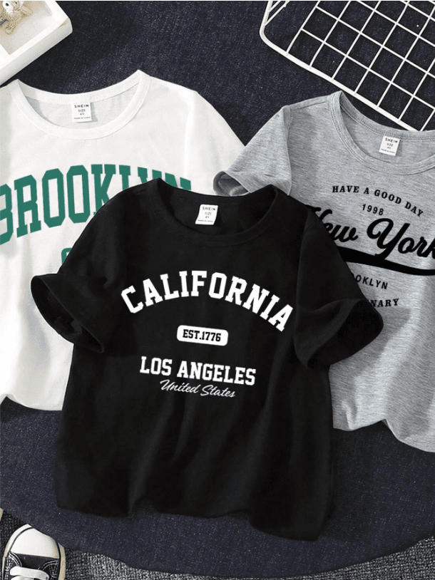 SHEIN Noms de villes, New York, Californie, Brooklyn, Jeune garçon Loisirs Concis Col rond Manches courtes T-shirt Costume trois pièces pour l’été