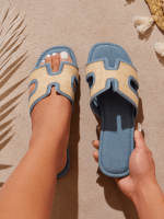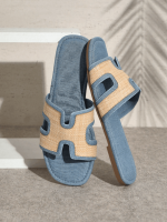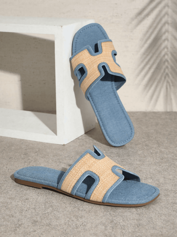 SHUZIA Sandales plates décontractées et confortables à bande en raphia pour femmes, chaussures de vacances, chaussures décontractées, chaussures de plage